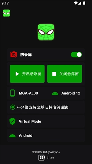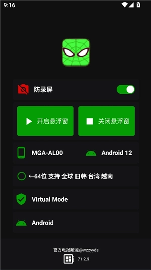蜘蛛侠框架该怎么玩呢? 1. 在本页面下载蜘蛛侠框架软件,安装完成后打开,首先开启首页的防录屏功能。