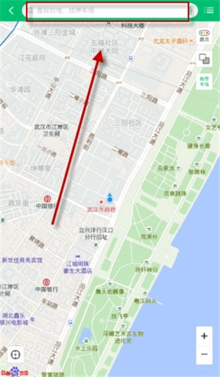 3、进入后会显示地图,点击上方,输入目的地