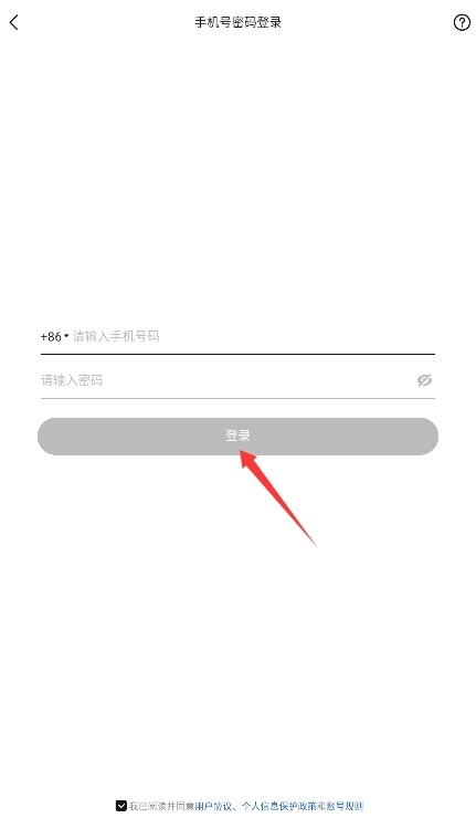 2、在登录页面输入注册手机号及对应密码,勾选同意选项后点击登录完成身份验证。