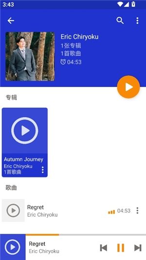 2、选择任意一首专辑歌曲进入播放界面