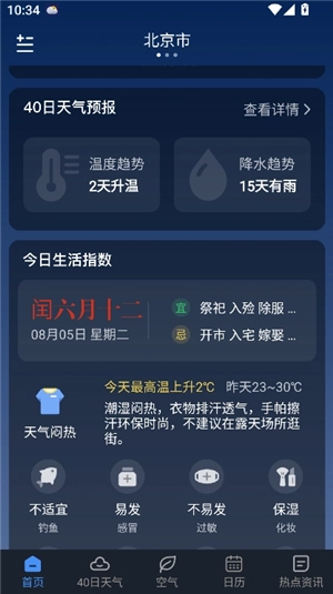 阳阳天气app,聚焦城市实时天气状况,未来40天的天气资讯一键即可轻松查询。其更新迅速,数据详尽,查询未来天气方便快捷,且信息权威可靠,助您轻松为生活与出行做好准备,让天气查询变得更加便捷、轻松。