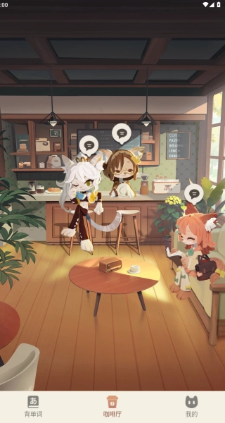 3. 轻点下方的咖啡厅,即可与三位趣味十足的卡通角色展开日常口语交流。