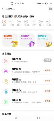 3、连续登录可以累积积分,积分可以兑换奖励,游戏包和实物奖品都在包里。