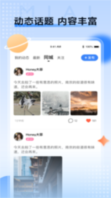 觅爱社交平台最新版是一款交友软件,适合喜欢轻松社交的用户,能加入兴趣圈子分享日常,参与语音派对讨论热门话题,还可以通过 纸飞机功能传递心情,高效的匹配,让每一次相遇都充满可能,这款软件成为结识好友的可靠伙伴!