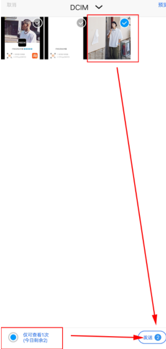 3、选择照片后,编辑内容,并且设置能评论的人,点击右上角的“发送”就可以啦。
