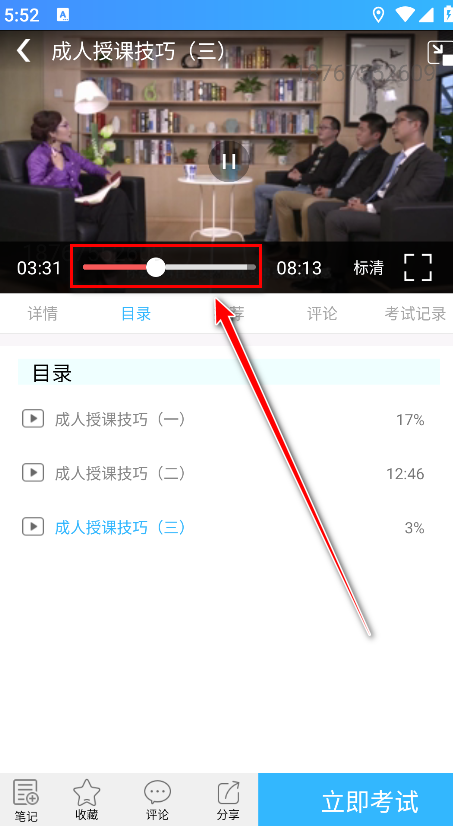 6. 自主拖动视频进度条,能够快速观看学习视频。