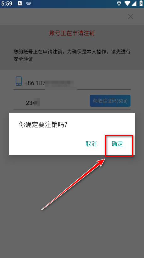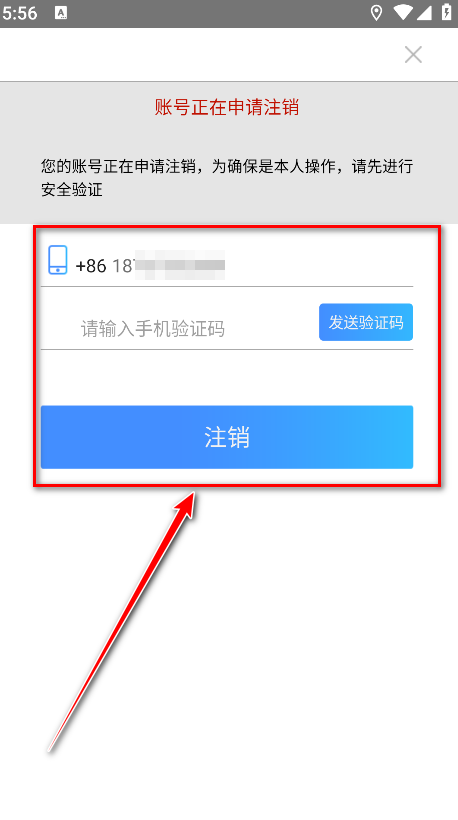 4. 填入手机所接收的验证码,然后点击“注销”按钮。