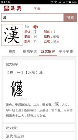 2、收录了大量汉字资料,如汉字定义,发音,笔画,部首等。
