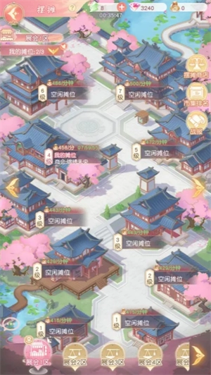 掌柜们能入驻的摊位存在不同等级,各等级摊位带来的收益有所差异,摊位等级越高,收益也就越高。掌柜既可以挑选空闲的摊位入驻,也能够选择去抢夺其他掌柜正在使用的摊位。若成功抢夺其他掌柜的摊位,还能获取对方摆摊期间已获得资源的一部分。无论是摆摊经营,还是进行摊位抢夺,都需要消耗摆摊体力。体力会随着时间慢慢恢复,但一旦达到上限便不再恢复。