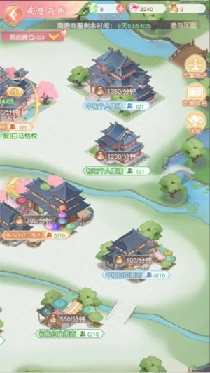 摆摊设有京都商区 - 本服与南唐商圈 - 跨服这两个商业区,玩家能够自主挑选摆摊地点。在这两个商业区里,玩家最多可同时占用三个摊位,每个摊位都得安排一支伙伴队伍,每支队伍要派遣6个伙伴,且伙伴不可重复派遣,即每个伙伴仅能被安排到一支队伍中。