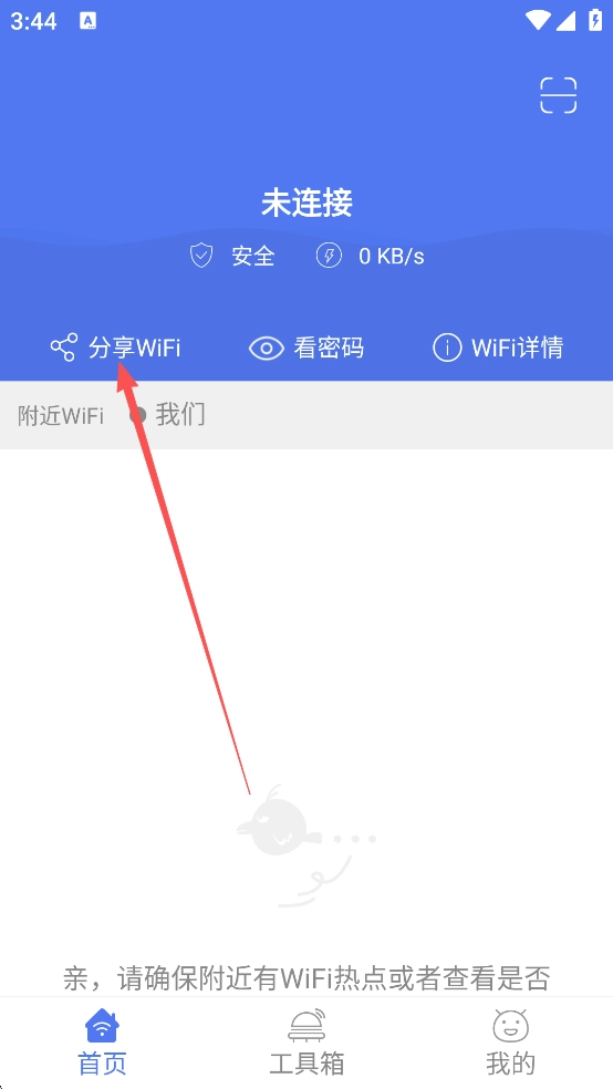 3、连接上他人的wifi后还可以直接分享给小伙伴