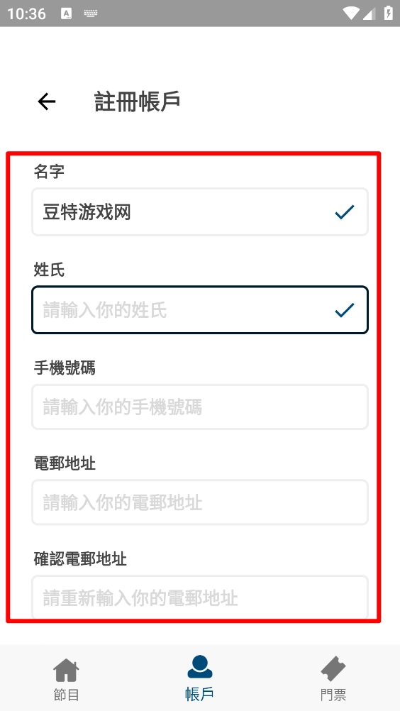 4、接着需要天填写相关的信息,包含名字、姓氏、电子邮箱等。