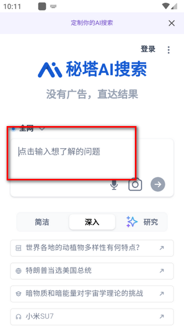 3、这里集成了AI秘塔搜索功能,只要输入你想了解的问题,就能进行快速搜索。