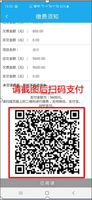 4、在交费环节可以看到交费二维码,将其截图后,可使用微信、支付宝或浦发银行APP进行扫码支付。