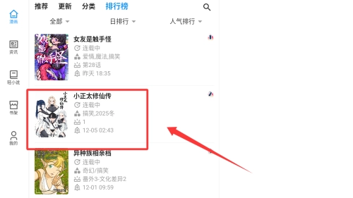 3、点击排名榜中的第二名进入阅读。