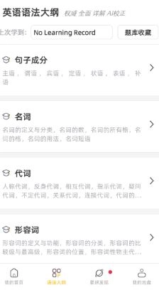 在“语法大纲”板块,可系统学习句子成分、名词、代词、形容词等语法知识点,构建完整语法体系。