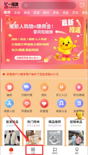 一诺集这个App是个综合购物商城,用起来比较顺手。它会根据你平时喜欢看什么、买什么,给你推荐一些可能感兴趣的东西,这样找起来能快一点。里面的商品分类做得挺细的,想买哪一类的东西,点进去就能看到不少同类商品,一次可以逛好几个品类。