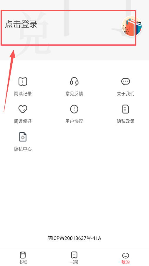 4、最后别忘记点击右下角的“我的”来登录账号,如此一来阅读记录就能得以保存,还可以设置阅读偏好以及查看隐私政策。