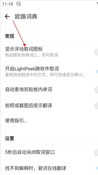 3、开启显示浮动取词图标后,将该图标拖动至目标单词处,就能完成取词操作。