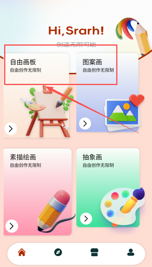 要是看到有想画画的冲动,直接点击下方四个画板中的任意一个就行啦,每个画板都能让你自由创作,不会有太多限制。