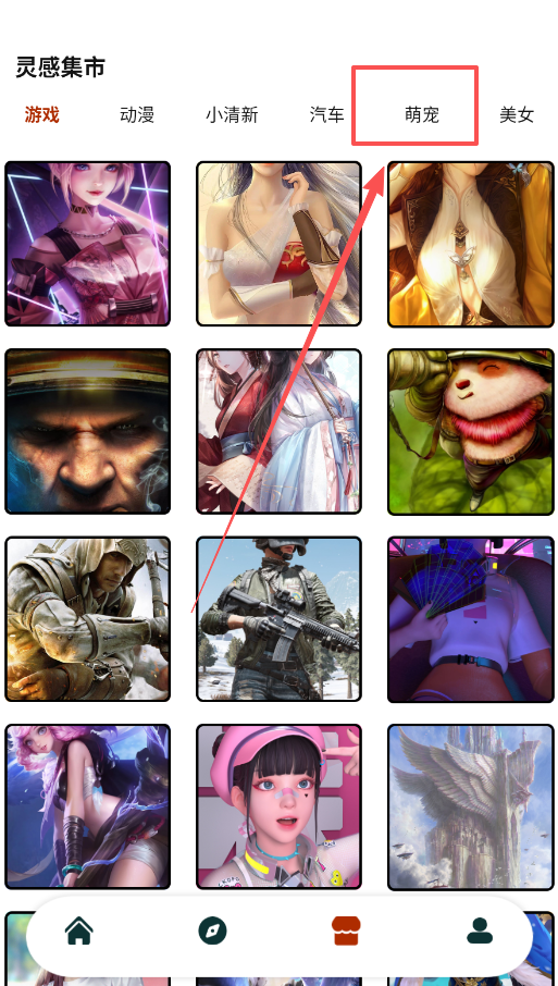 1、刚开始不用想太复杂,先在灵感集市里随意点开几个好看的分类和图片,像萌宠或者风景这类,找找感觉就行。