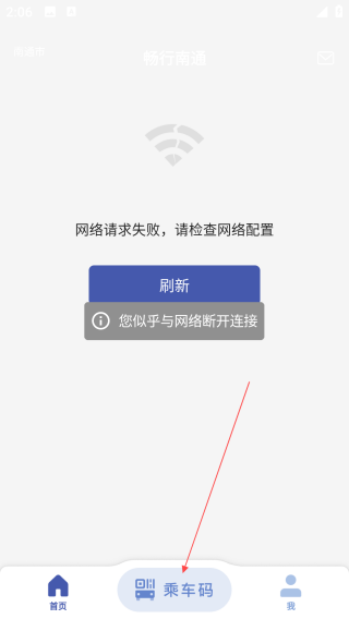 1、打开畅行南通掌上公交,点击【乘车码】。