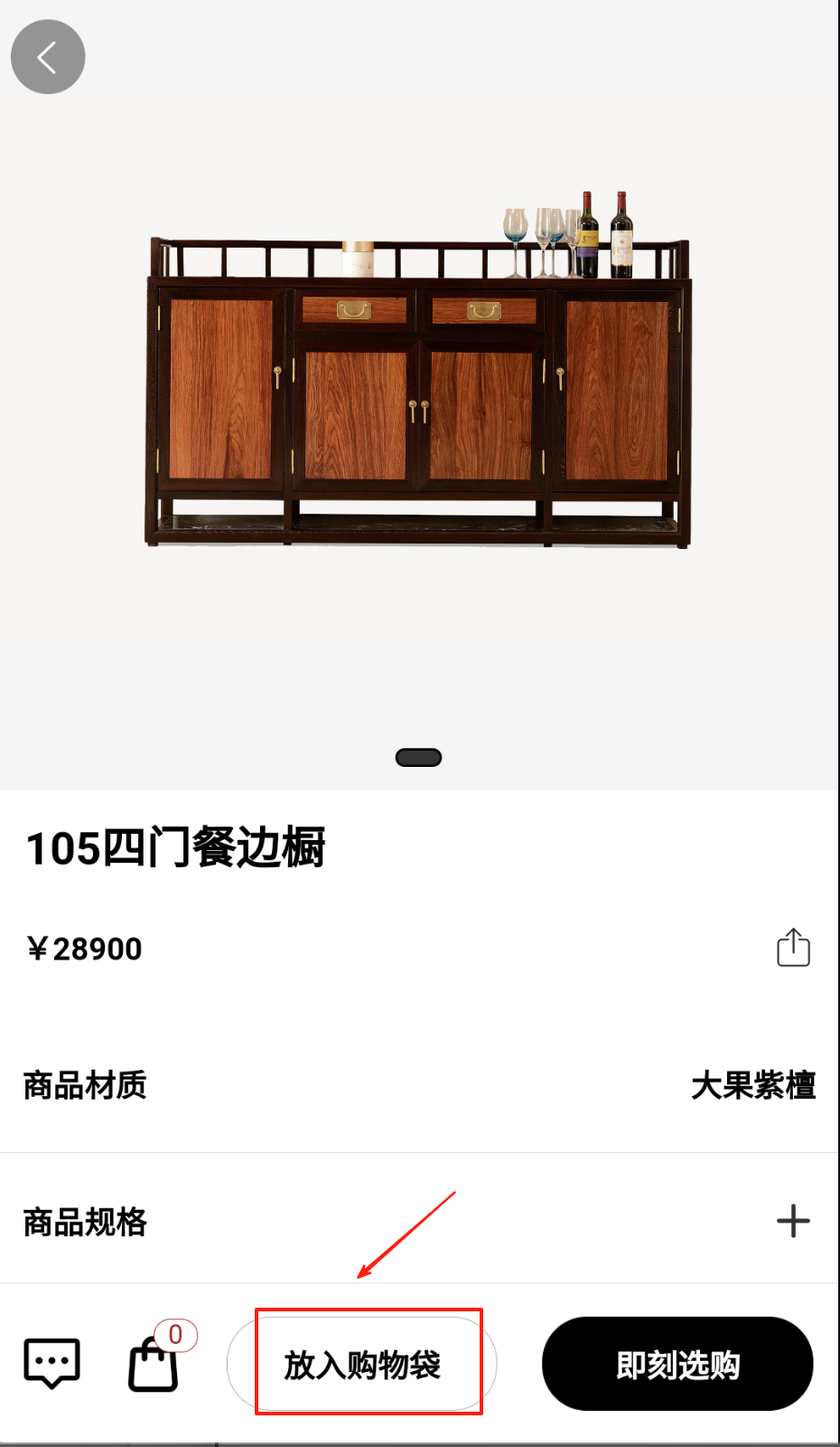 2、把选中的圈椅或者博古架添加到购物袋,通过批量结算可以享受满减优惠。