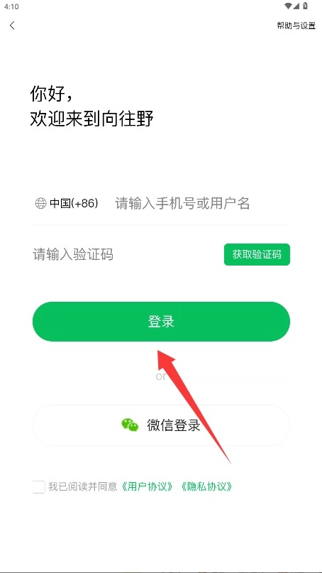 2、在登录界面填写手机号与验证码,确认勾选同意平台相关协议后,点击登录按钮即可进入应用。