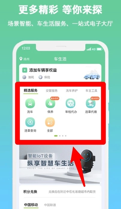 3、车生活服务:整合违章查询与缴费、年审代办、洗车养护、轮胎更换等一站式用车服务功能。