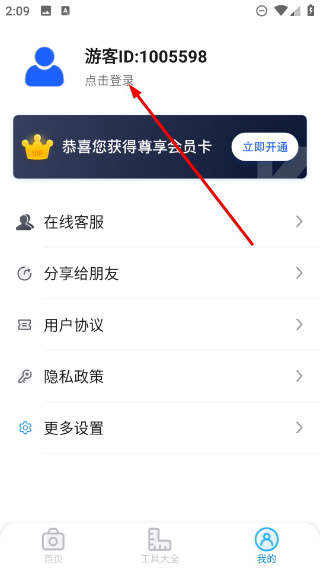 2、进入【我的】页面后,点击【点击登录】选项,即可进入账号登录流程;完成登录操作后,就能使用更多功能权限。