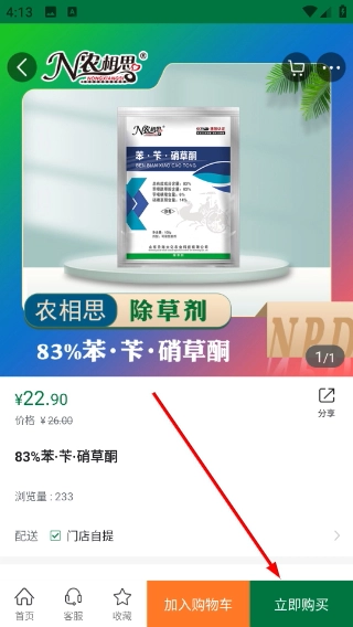 3、在搜索结果里,找到目标商品(比如“农相思除草剂”)后,点击它对应的购物车按钮,就能把该商品添加到购物车中。