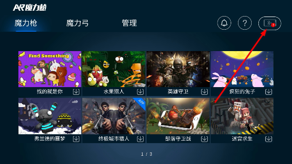 1、在【AR魔力枪】的主界面上,能够选择【我的玩伴你】【水果猎人】之类的游戏,点击右上角的图标就可以进入装备管理页面。