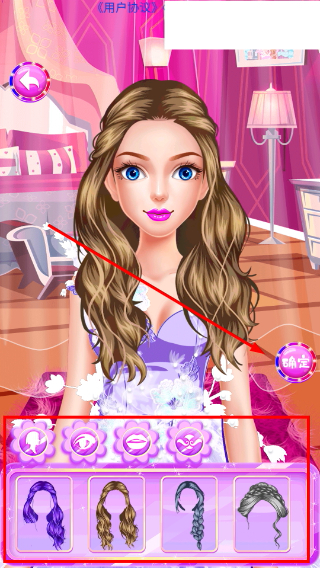 1、在“装扮小公主”游戏的启动界面,点击“开始”按钮后,就能进入角色装扮的互动页面,正式开启装扮流程。