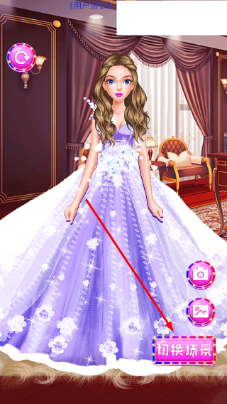 4、完成装扮后,点击“切换场景”按钮,就能更换当前的背景场景,以此展示不同环境下的装扮效果。