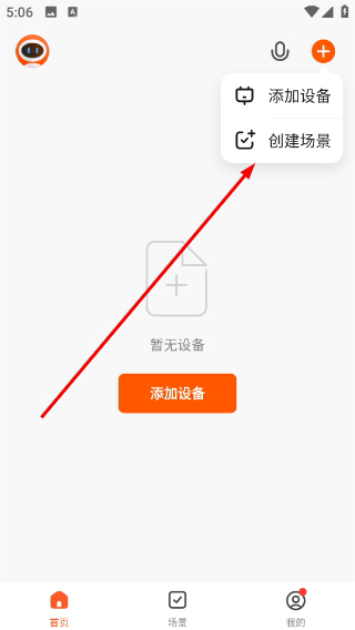 1、在智能设备管理首页,点击右上角的“+”按钮,接着选择“创建场景”选项,就能进入场景创建的功能选择界面。