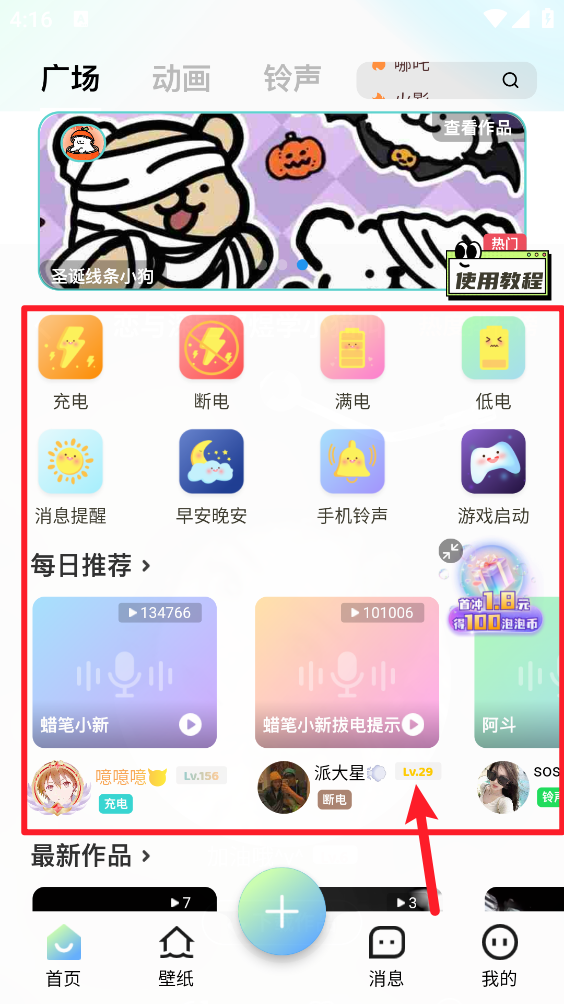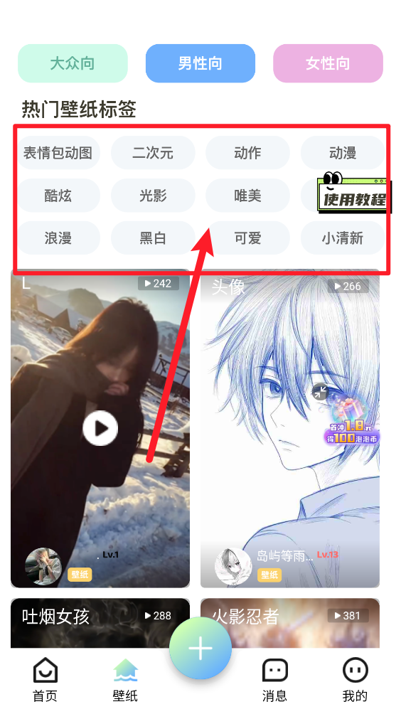 4、切换至壁纸板块,可以根据标签选择喜欢的壁纸。