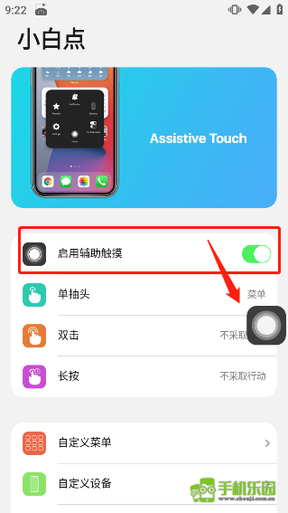7、把所有权限都开启后,点击“启动辅助触摸”,就能开启“小白点”功能了。