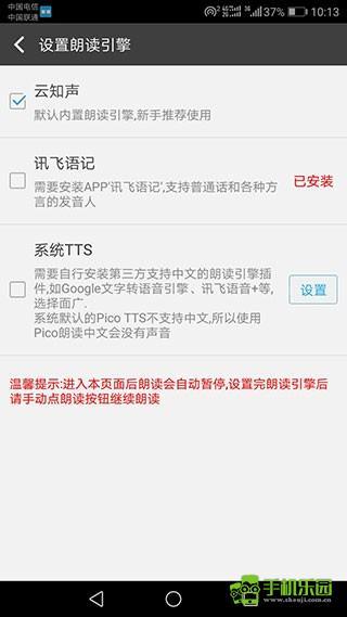 4、在设置中,您还可以选择朗读引擎;文字朗读神器支持多种朗读引擎,包括云知声、讯飞语记和系统TTS;每种引擎都有其独特的特点和优势,您可以根据自己的需求选择合适的引擎;
