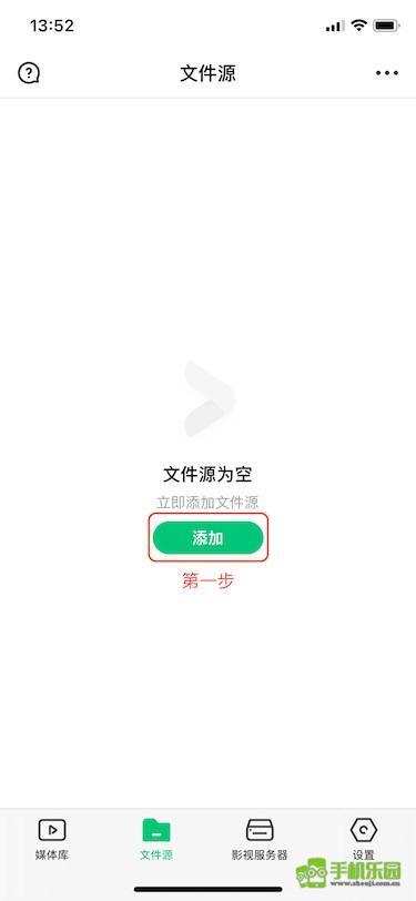 初次打开VidHub App后,能看到“媒体库”板块旁的添加按钮,此时点击该“添加”按钮即可完成第一步操作。
