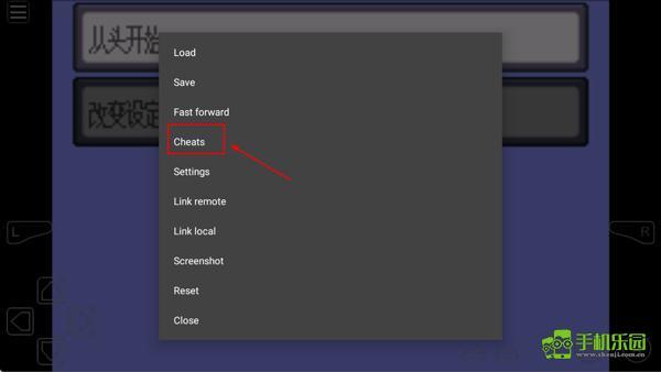 1、启动模拟器,待游戏运行后,点击指定图标,选择Cheats选项;