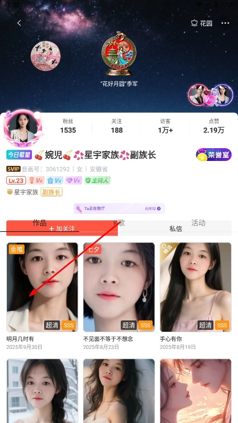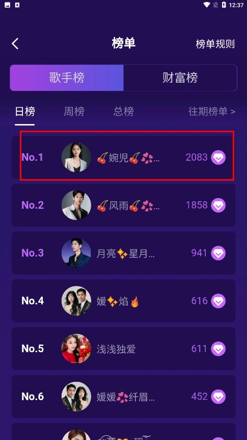 2、在歌手榜榜单页面,点击排名靠前的歌手,例如【婉児-歌手名称】,即可进入该歌手的主页。