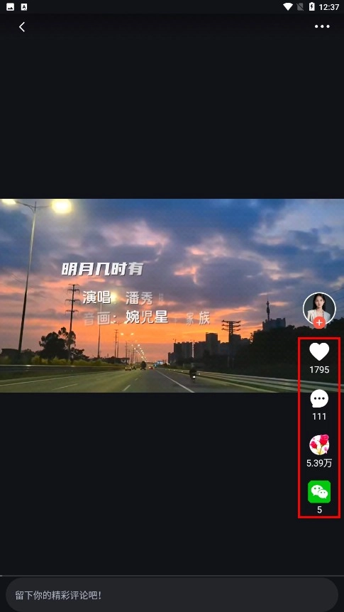 4、在作品的播放页面,用户能够开展点赞、评论、分享之类的操作,例如点击心形图标来完成点赞。