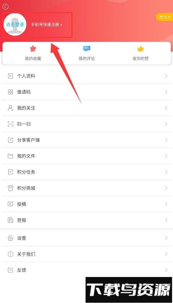 2、进入个人中心页面后,点击左上角的登录入口,接着选择“手机号快速注册”功能,就能开始创建个人账户了。