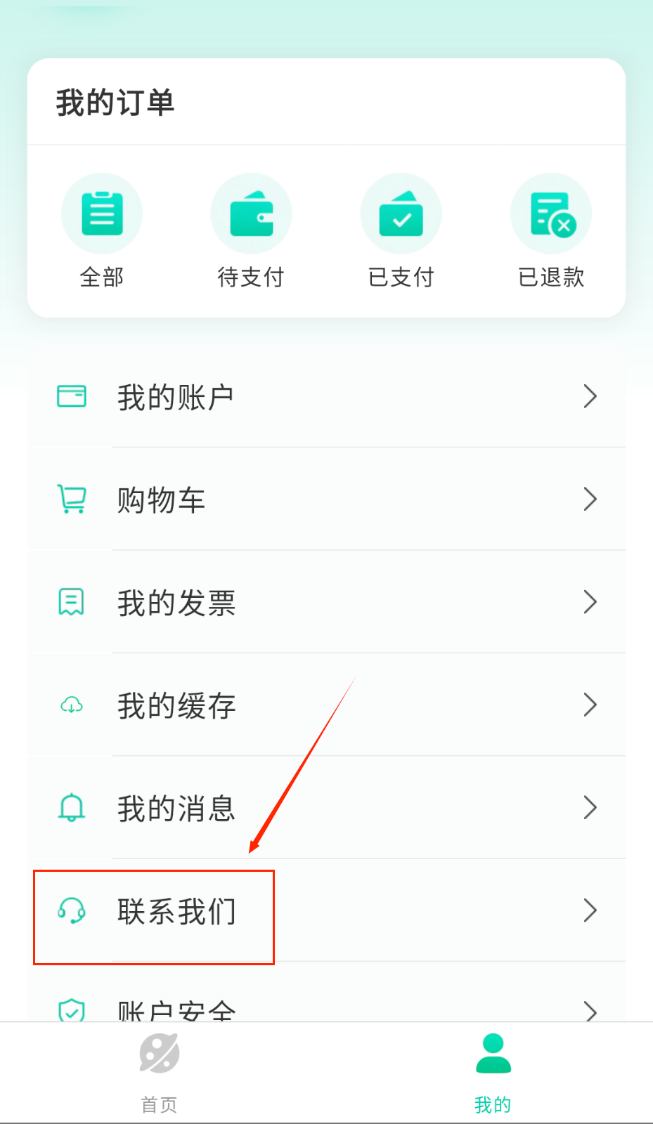 1、运行该程序后进入个人中心页面,点击联系我们。