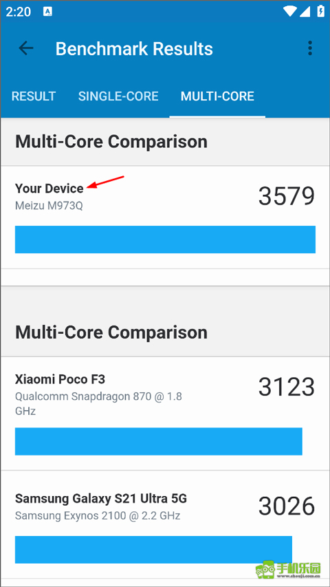 5、打开多核性能比较,用户还能查看自己的手机和其他品牌手机的性能对比。