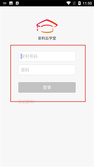 2、登录界面需要填写【安利号码】与【密码】,填写完毕后点击【登录】按钮就能进入平台,要是忘记密码可以点击相应选项找回。