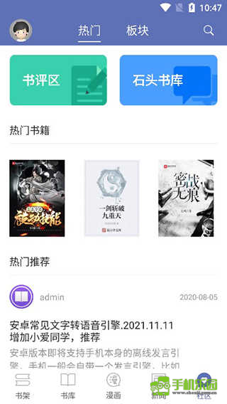 1、安装本站提供的石头阅读安卓版,打开软件后,在书库板块即可浏览到丰富多样的资源。