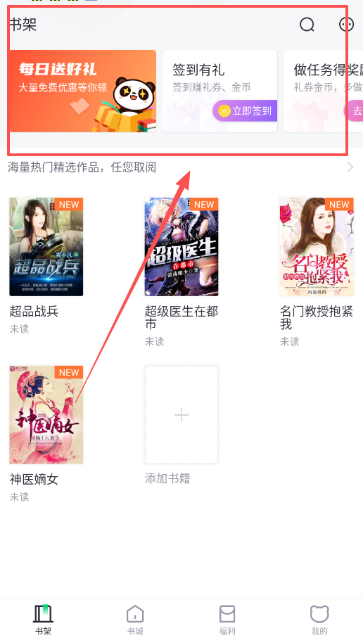 每天使用前请先完成书架页的签到任务,积累的礼券能兑换更多书籍。