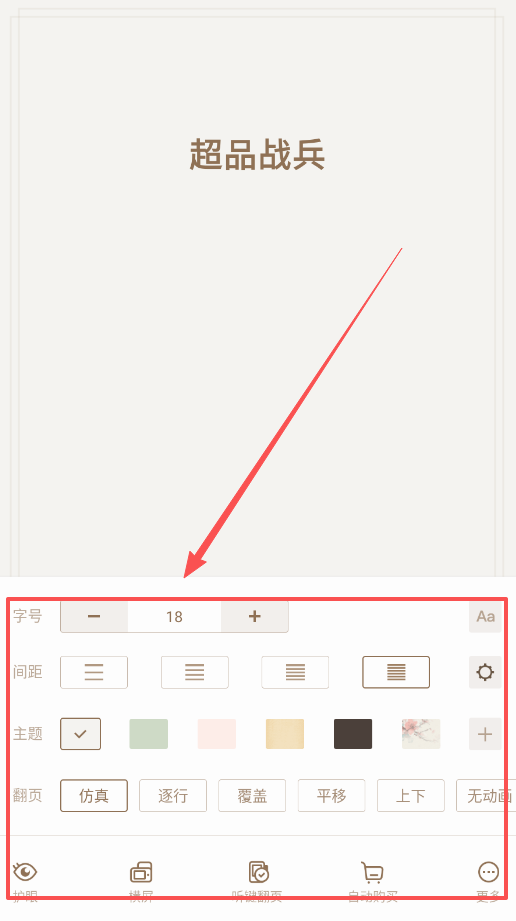 阅读过程中可随时调出设置菜单,字号以18为起点支持自由调整,翻页效果则提供了多种动画选项供选择。