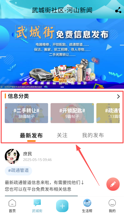 2、在“武城街”板块中,你能够免费发布与查看本地生活服务类信息,该功能对于处理日常琐事而言十分实用。